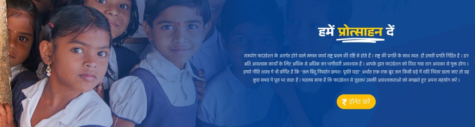 राजयोग फाउंडेशन किसी भी राष्ट्र की सच्ची समृद्धि केवल उसका आर्थिक विकास ही नहीं है बल्कि उसकी आध्यात्मिक विरासत की समृद्धि उसकी विविध संस्कृतियों की जीवंतता । उस राष्ट्र की शिक्षा प्रणाली की शक्ति और उसके लोगों की भलाई में ही निहित है । भारत के समग्र विकास को बढ़ावा देने की गहरी प्रतिबद्धता हमारे फाउंडेशन की स्थापना का मुख्य उद्देश्य है ।